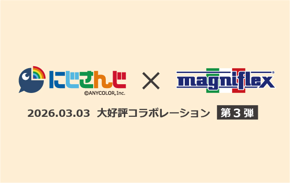 特別コラボ配信『にじさんじ×マニフレックス コラボ第3弾 魁星さん×佐伯イッテツさん 抽選応募フォーム!』 ご視聴をいただき皆さまの中から抽選で\オリジナルミニピロー(非売品)/をプレゼントいたします♪ 皆さまのご応募心よりお待ちしております♪ 【賞品】 オリジナルミニピロー(非売品) 5名様 【応募期間】2026年3月3日(火)配信終了後~2026年3月31日(火)23:59まで ※上記期間外の応募は無効となります。必ず期間内にご応募ください。 ※当選者にはメールにて当選のお知らせをさせていただきます。 ※賞品は2026年4月中旬頃を目安に発送させていただきます。 ●以下フォームよりご応募ください。